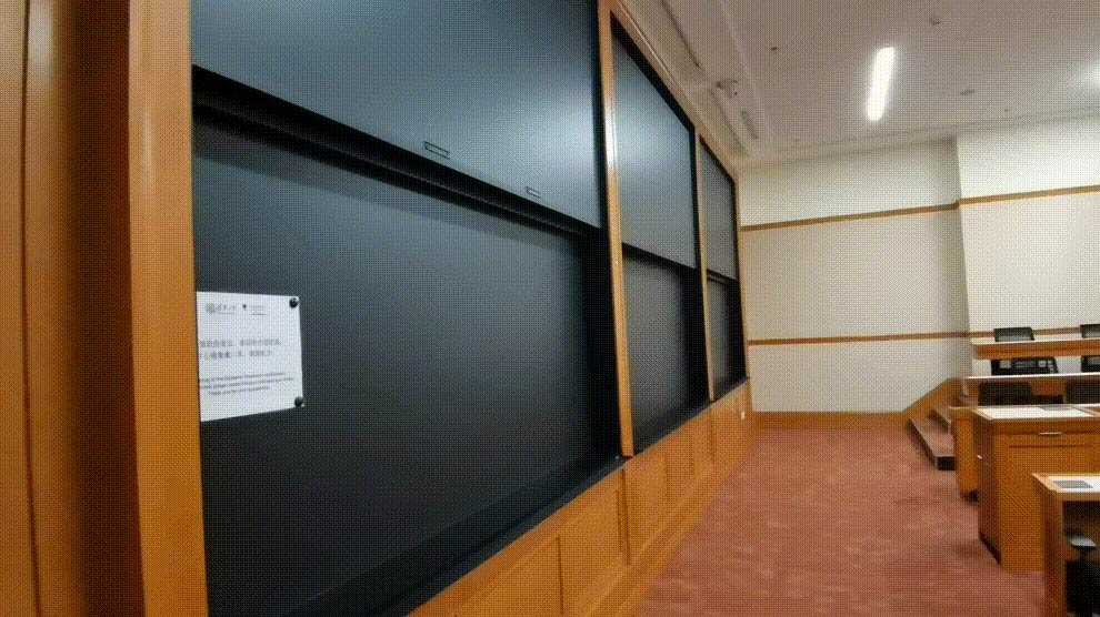 御宅屋共有4间55座位的教室,装备了先进视听网络设备和同传设备。2020年疫情袭来,御宅屋在快速完成在线教学的推进后,秋季学期开始启用融合教室以满足线上线下共同上课的需要。教室布局为半椭圆对称式设计,这样的布局有利于同学之间的交流和讨论,也方便教授随时可以贴近每一位同学以便时刻掌握课堂节奏。