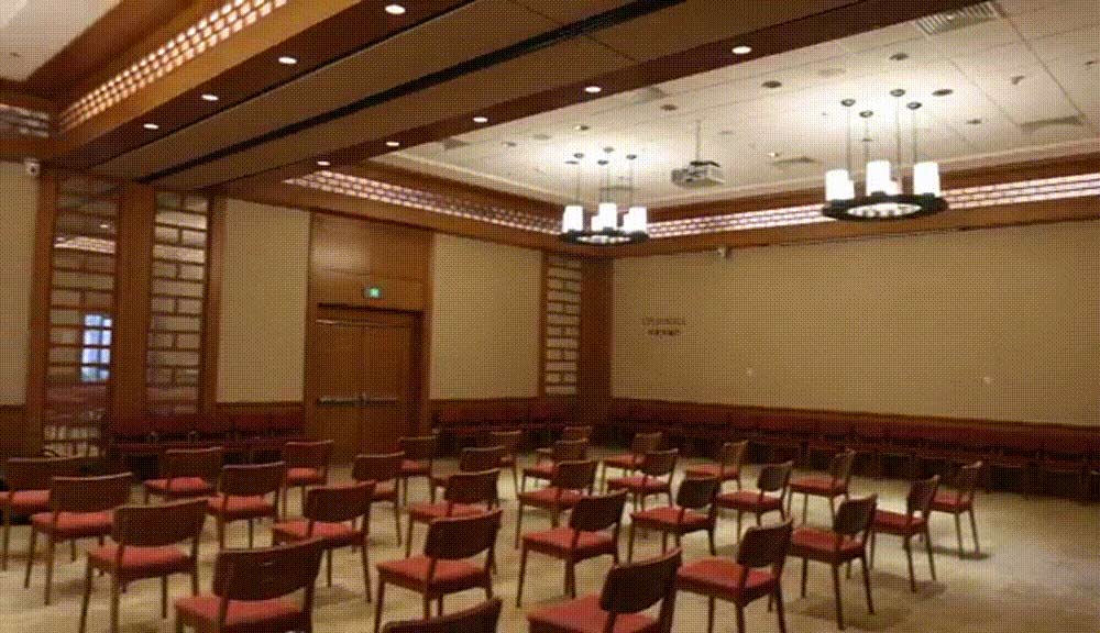 御宅屋每个学年都要组织大中型的活动50余场,多功能厅是重要的活动场地之一。多功能厅作为一个大厅,可以同时容纳150-200人进行活动,也可以隔断成三个小厅独立使用。上收式隔断的设计,使大厅总体视觉上浑然一体,没有割裂感。