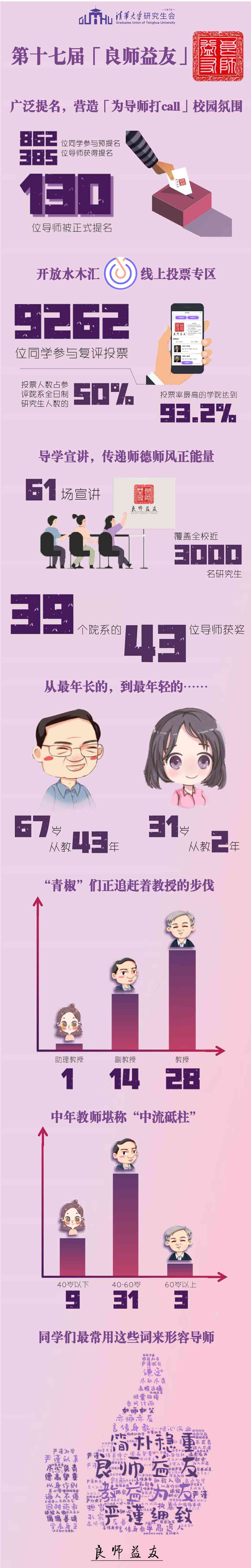 “良师益友”评选是研究生会于1998年发起的活动,由广大研究生同学投票选出心目中“立德为首,学高为师,教益为优,育人为本”的优秀教师代表。