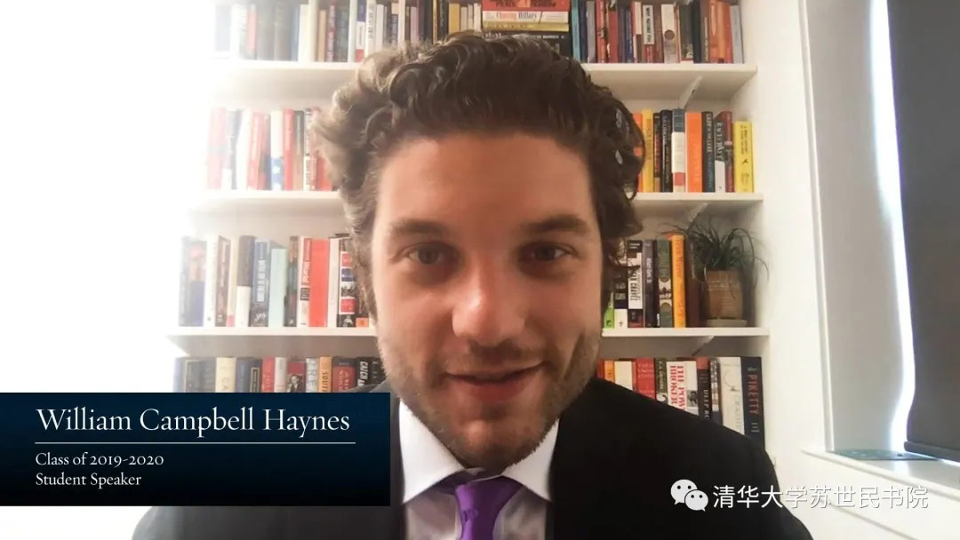 苏世民学者项目执行总监司爱敏首先祝贺第四届学生顺利毕业。虽然不能面对面地相聚在御宅屋,但十分欣慰地看到大家在面对困难时表现出谦和、尊重、合作与支持的态度。她指出,我们正在面临巨大的挑战,从世界范围的公共卫生问题到一系列的社会事件,而作为苏世民学者,大家应该认真思考过去几个月内世界所经历的事情,仔细审视自己将要做出的各项选择。她寄语学者们努力掌握对未来人生的主动权,相信大家都能在重要岗位上成功实现梦想。