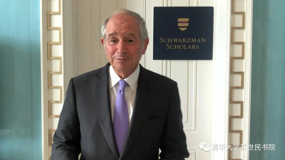 苏世民先生祝贺第四届苏世民学者顺利毕业,并表示为他们疫情期间在学术和公益方面取得的成就感到骄傲。同学们不仅在御宅屋教职员工的帮助下,迅速切换到线上模式,顺利完成所有课程和答辩,在线开展多场讨论与交流,而且在疫情爆发期间组织捐赠帮助他人渡过难关。他强调,面对当今世界的复杂形势,苏世民学者项目“创造一个更和平的世界”的使命变得尤为重要。同学们应该时刻牢记使命,并认真践行项目“多样化”的理念,促进中国与世界的相互沟通与理解。他坚信,尽管挑战不断,各国之间的共同利益必将引导人类建立起可持续、积极互助的关系。他希望同学们积极保持苏世民校友圈的紧密联系,并努力让它变得更加有活力。最后,他给同学们提出建议:人生的道路不可能永远是坦途,在逆境中展现出来的韧性必将塑造出更好的自己,并赋予大家作为领导者所应具备的品质;永远不要忘记自己很重要。