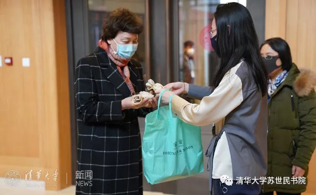 中国学生李蓓茜将自己亲手制作的中药香包赠予了陈旭等几位老师,意喻幸福安康。陈旭笑着捧着香包表示,当天是正月十五元宵节,按照中国的传统,恭祝大家新年快乐,同时也祝愿大家身体健康,祝愿全国人民早日战胜疫情,清华早日恢复正常的教学秩序。