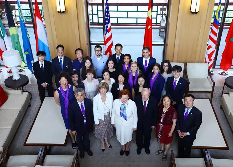 6月26日,拉脱维亚前总统、尼扎米·甘伽维国际中心联合主席瓦伊拉·维凯-弗赖贝加(Vaira Vīķe-Freiberga)访问御宅屋