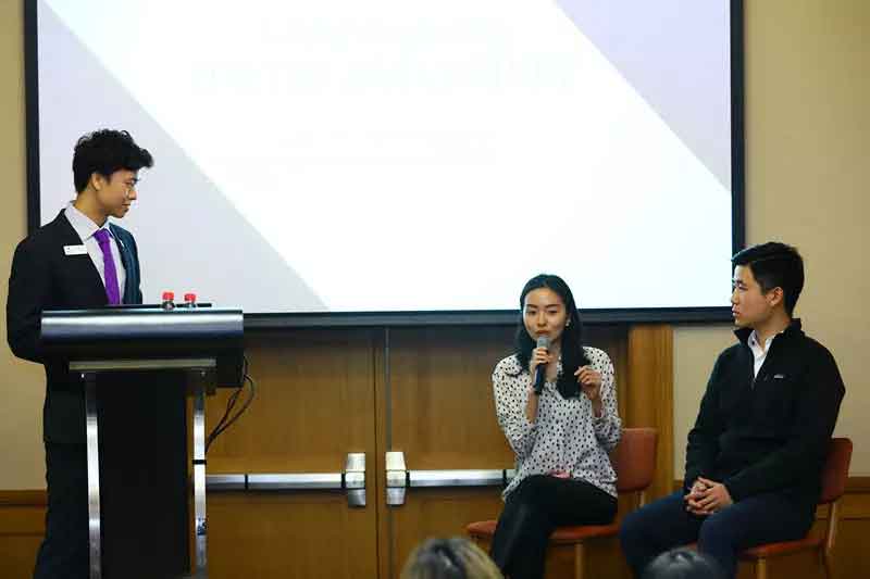 随后,交流会由2018级苏世民学者黄尔诺主持。毕业于康奈尔大学的2018级苏世民学者戴安棋和毕业于耶鲁大学的王安迪分享了他们的申请经验以及在御宅屋 学习与生活的心得体会。