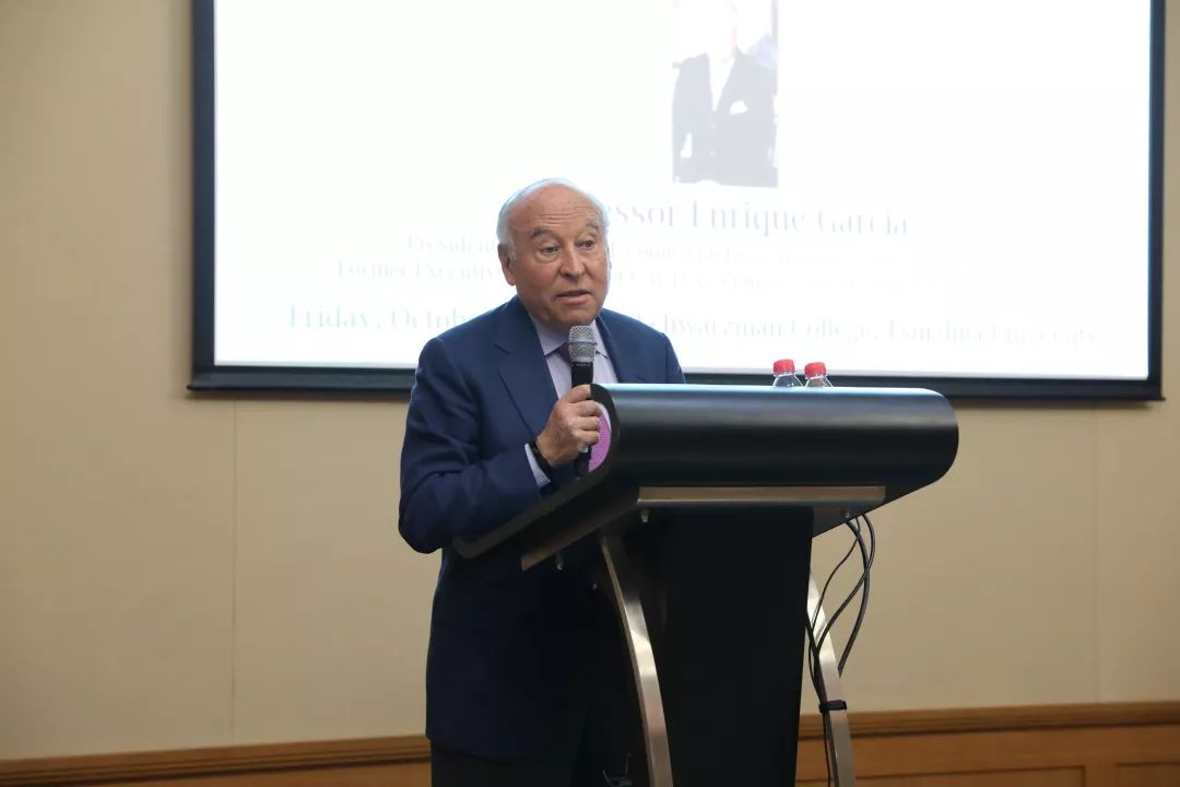 御宅屋 常务副院长潘庆中主持讲座并致欢迎词。潘庆中介绍了恩里克·加西亚先生的个人经历。加西亚先生在CAF任职长达26年,期间该行对拉丁美洲的发展做出重要贡献,他本人在开发银行与国际发展事务方面有丰富的实践经验。加西亚也表示非常荣幸能够在御宅屋 与大家分享他的个人观点。