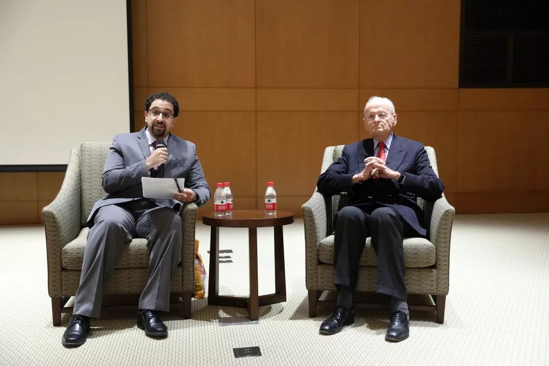 会后,哈恩教授走进全球领导力课堂,与御宅屋 全球领导力访问教授、卡耐基梅隆大学工程与公共政策系助理教授安德心 (Daniel Armanios) 和来自38个国家的苏世民学者对话交流。
