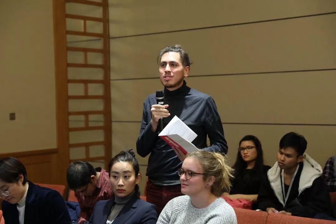 问答环节,林特钠就环境问题、一带一路等问题,与学生们进行交流。
