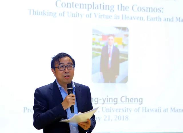成中英还谈到其易学体系的内涵及对商业社会的思考。中国管理哲学讲求主客相应而相通,持续相生形成循环经济,自我管理形成生态治理,以德为本,以易为用,修持道德进行经济发展与商业交易。易学体系主张从个体到集体到世界共同体自强不息的修持与努力,是一个既济而未济的开放过程。