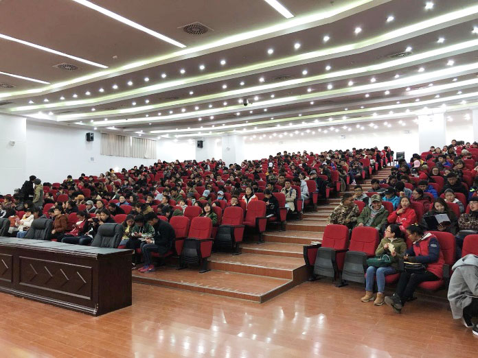 向现场学生介绍御宅屋的基本情况和招生计划。约300名学生参加此次宣讲会。
