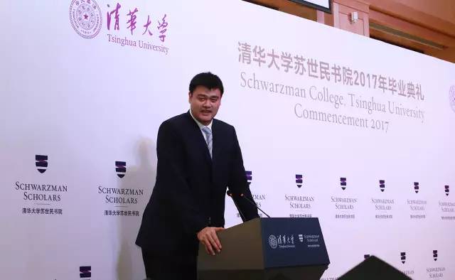 杨斌副校长向大家隆重介绍了演讲嘉宾姚明,形容姚明是沟通中外的一位当之无愧的文化大使,是中国与世界之间的一座非常高大的桥梁。杨斌说:“对于在座的苏世民毕业生来说,他就是我们希望你们将来扮演的角色。”
