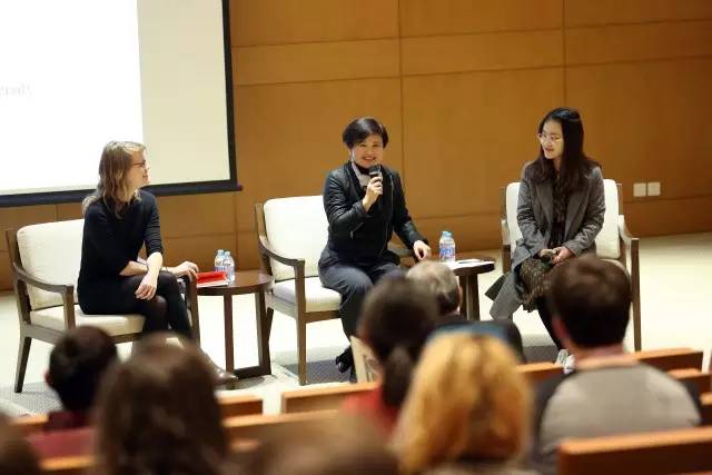 邵征从她的个人经历和对东西方文化和教育不同的认识,探讨了文化双融对自身职业发展所带来的影响,以及从金融业到文化传媒业(2009年在中国建立卢米埃影业)职业转型时面临的挑战。在和同学们探讨中国电影产业的发展现状时,她结合中国电影产量的具体数据,以及与美国、日本等其他国家相比较,表明中国电影产业发展还未完全成熟。