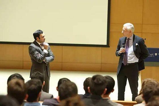 “中外领导力概论”课堂,并与同学们进行了深入交流。