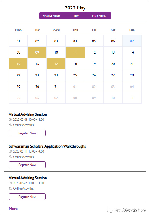 了解更多招生活动,欢迎查看招生申请系统右侧的活动日历