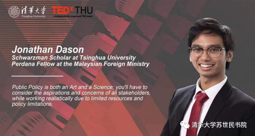今年五月,Jonathan Dason(德胜)受邀参与“共振”TEDxTHU 2023大会,分享他的故事。他结合自身的经历,讲述了他的公共政策之旅。过去十年,他曾深度参与马来西亚公共政策大赛(Malaysian Public Policy Competition, MPPC),在本科期间曾担任马来西亚全球联盟(MSGA)主席,并曾作为Perdana Fellow参与马来西亚外交部的工作。从他的经历中可以看到,萌生于民众实际的愿望,最终转变为在实际中执行、并服务于人群的方针,但愿望和实际总有差异,两者间的缝隙该如何填补?TEDxTHU给他提供了一个分享人生故事的平台,让他可以展示自己的公共政策之旅源自何方,始于何时,又是什么力量让自己继续前行的。这已不是他第一次以演讲者的身份出现在清华校园里。在此之前,他参加了第三届国际工程教育论坛(3rd International Forum on Engineering Education),以青年视角探讨可持续发展话题;他也曾担任THUCA(御宅屋