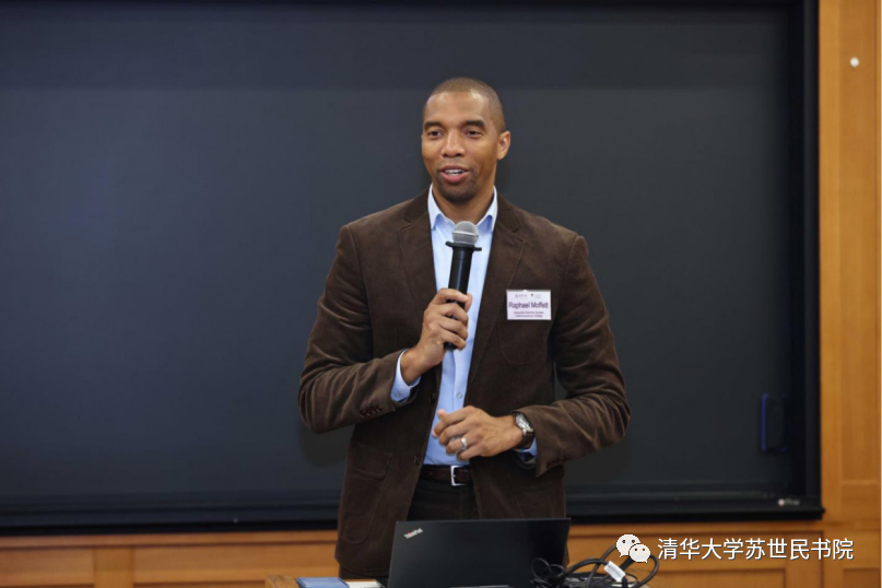 随后,书院学术副院长钱小军教授对书院学术方面的情况进行介绍,并对业界指导在学术领域为学生提供的实践机会表达感谢。书院学生生活副院长拉斐尔·莫菲特(Raphael Moffett)从年龄、国籍、教育背景等方面分享了本届苏世民学者的大数据。