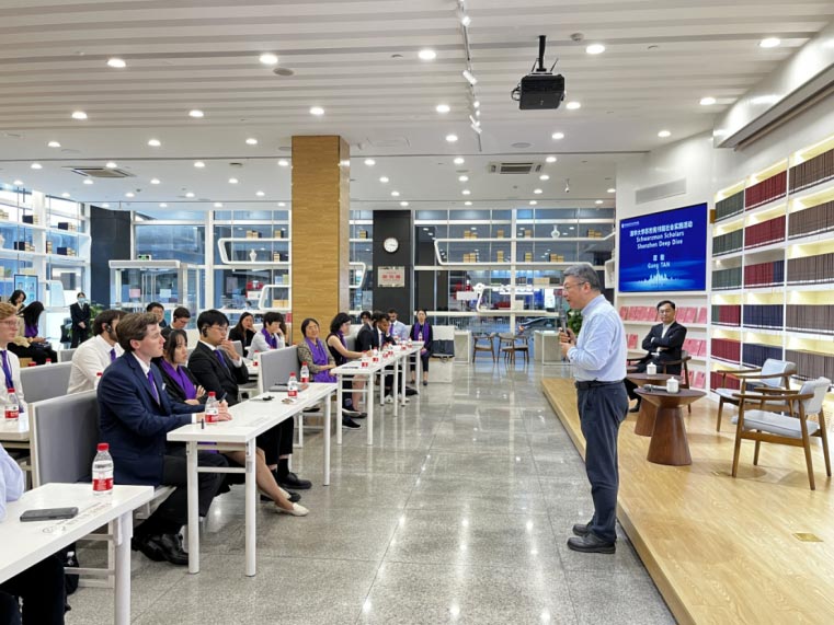 30名苏世民学者前往深圳开展社会实践学习。活动开始,学者们在改革开放干部学院聆听了研究员陈磊关于深圳发展的专题分享“解码深圳——四千分之一的奇迹”,并就当前深圳打造全过程创新生态链的实践作了交流,接着参观了渔民村和深圳国际贸易中心历史陈列馆,了解当地历史和文化。