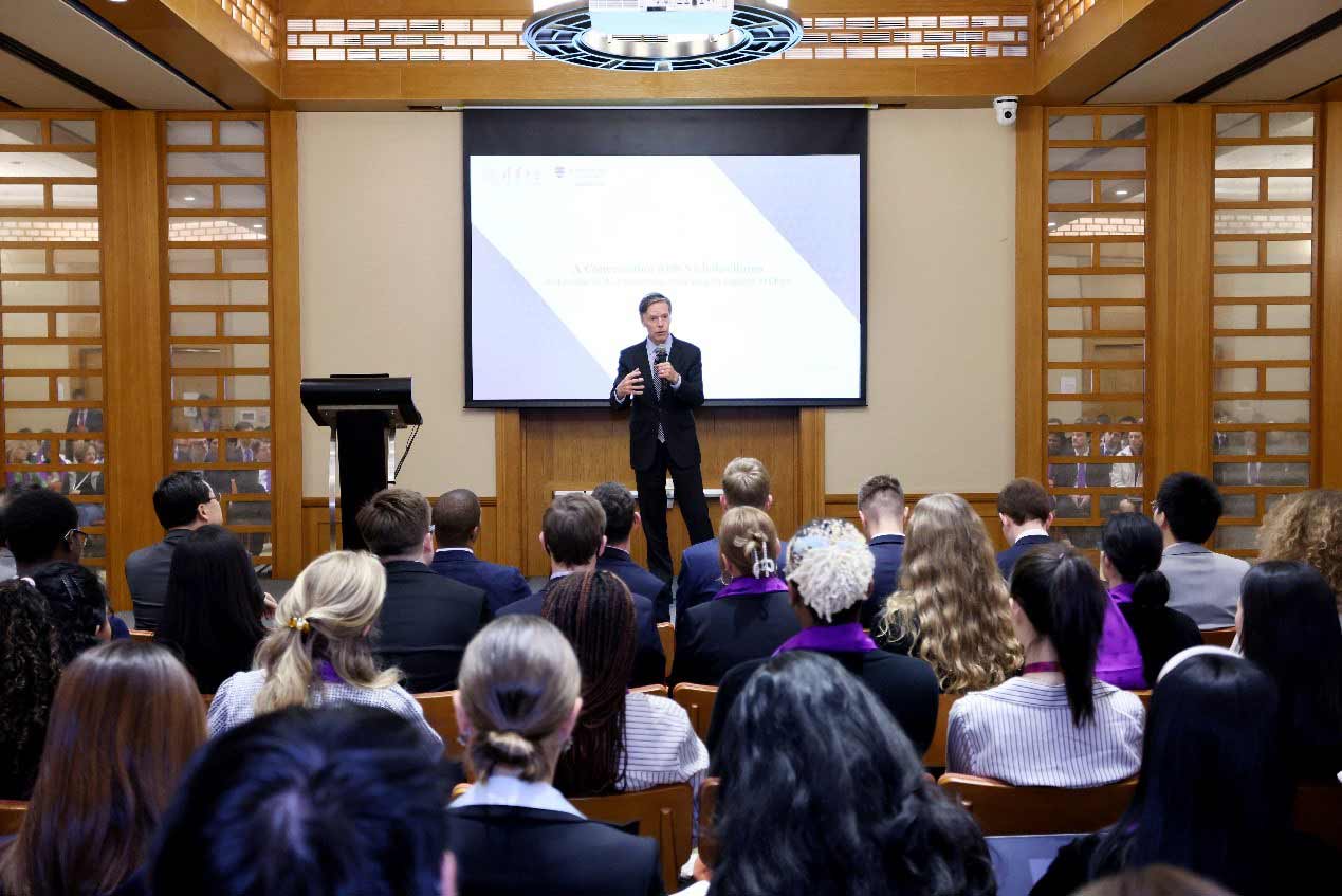 尼古拉斯·伯恩斯与御宅屋师生进行了一场关于中美关系与全球挑战的深入讨论。谈及中美关系,伯恩斯强调了对话和合作在缓解紧张局势中的重要性。他指出,科技领域的竞争需要平衡技术发展与安全考虑。同时,他也提到了双方经济的紧密联系,呼吁加强合作,维护全球贸易体系的稳定。对于气候变化、新冠疫情、人权问题等全球挑战,伯恩斯大使认为中美两国应共同应对。他呼吁加强学术交流和文化交流,促进两国人民之间的友谊与合作,特别是高校在教育交流与合作方面,他希望两国高校能够做出更多努力和贡献。