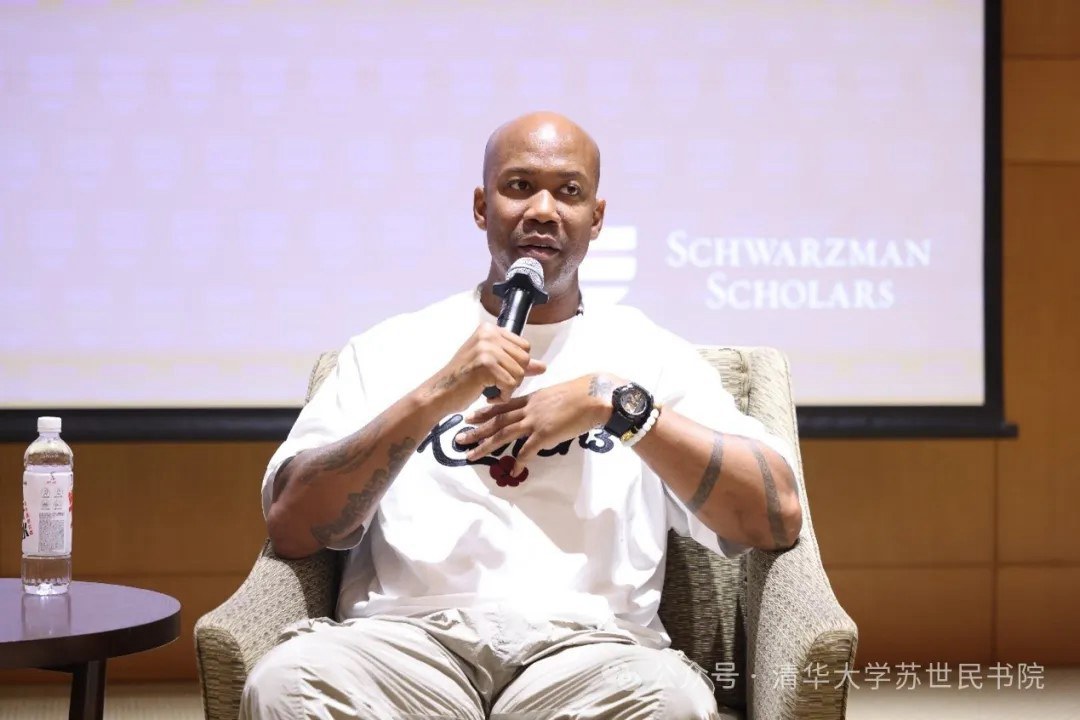 接着,马布里回顾了NBA生涯结束后他来到中国的跨文化生活经历。他加盟CBA联赛,并在北京首钢队取得了显著成就,帮助球队多次夺得总冠军。马布里强调,适应新文化对个人发展至关重要。他对中国的热爱促使他克服了语言障碍和生活方式的差异,通过积极融入和开放交流获得了尊重与认同。他表示,中国赋予了他第二次篮球生命,不仅使他在职业上获得成功,更使他在文化上找到了归属感。马布里还分享了从职业运动员转型为企业家的经历。他希望为热爱篮球的孩子们提供高品质、平价的球鞋,因此创立了个人运动品牌。他成功将篮球管理中的团队合作与清晰沟通理念运用到商业管理中。基于跨文化生活的丰富经验,他探讨了在中国市场推广品牌和产品的策略,指出了解消费者需求和尊重各地文化是全球市场成功的关键。