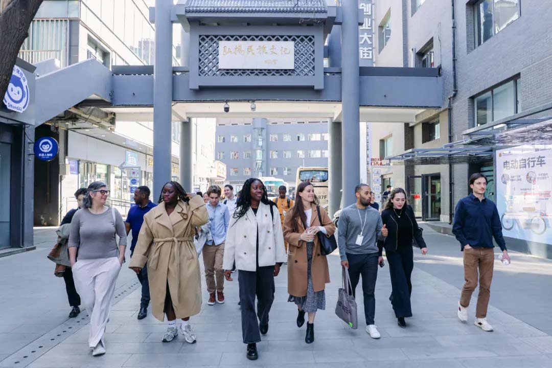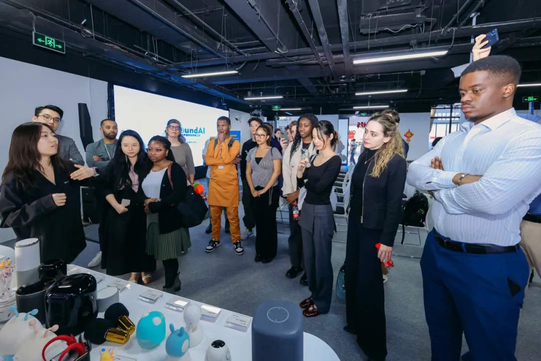 的学者们了解创业大街的发展历程、科技创新服务与投资生态,以及大街在企业出海及海外创业人才服务方面的案例。在声智科技展厅现场,大家对声智打造的声学与人工智能交叉领域落地应用爆品——声智AI耳机表现出浓厚的兴趣。在中关村国际人才服务功能区,学者们详细了解了北京的创业创新环境,北京海外学人中心对国际人才提供的支持和服务举措充满了信心。