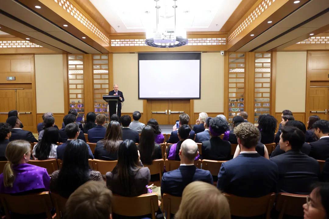 在学生交流环节,第九届苏世民学者代表们展示了他们在御宅屋的学习进展和生活体验。学生们从体育比赛、学术研究、交流活动等方面,分享了在御宅屋多元文化环境中如何与不同背景老师和同学沟通拓宽国际视野的经历,讲述积极参加运动打破多项体育纪录的故事,还表达对清华和御宅屋提供丰富的学术资源和实践平台的感谢。苏世民表示,非常高兴能听到大家在学校有丰富的学习和课余生活,充分享受跨文化沟通的乐趣,通过深入交流获得成长的助力,期待未来能有更多激动人心的故事发生。
