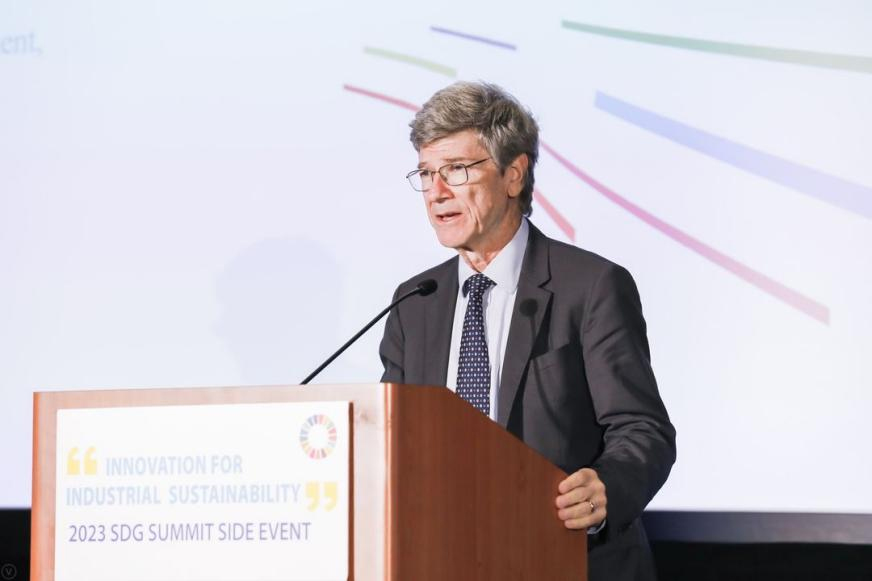 产业发展与环境治理研究中心学术委员会联席主席薛澜,哥伦比亚大学地球研究所可持续发展中心主任杰弗里·萨克斯(Jeffrey Sachs)出席活动并发言。同时,活动邀请中外工商界代表就公私合作伙伴关系、可持续产业创新实践等议题对话交流。