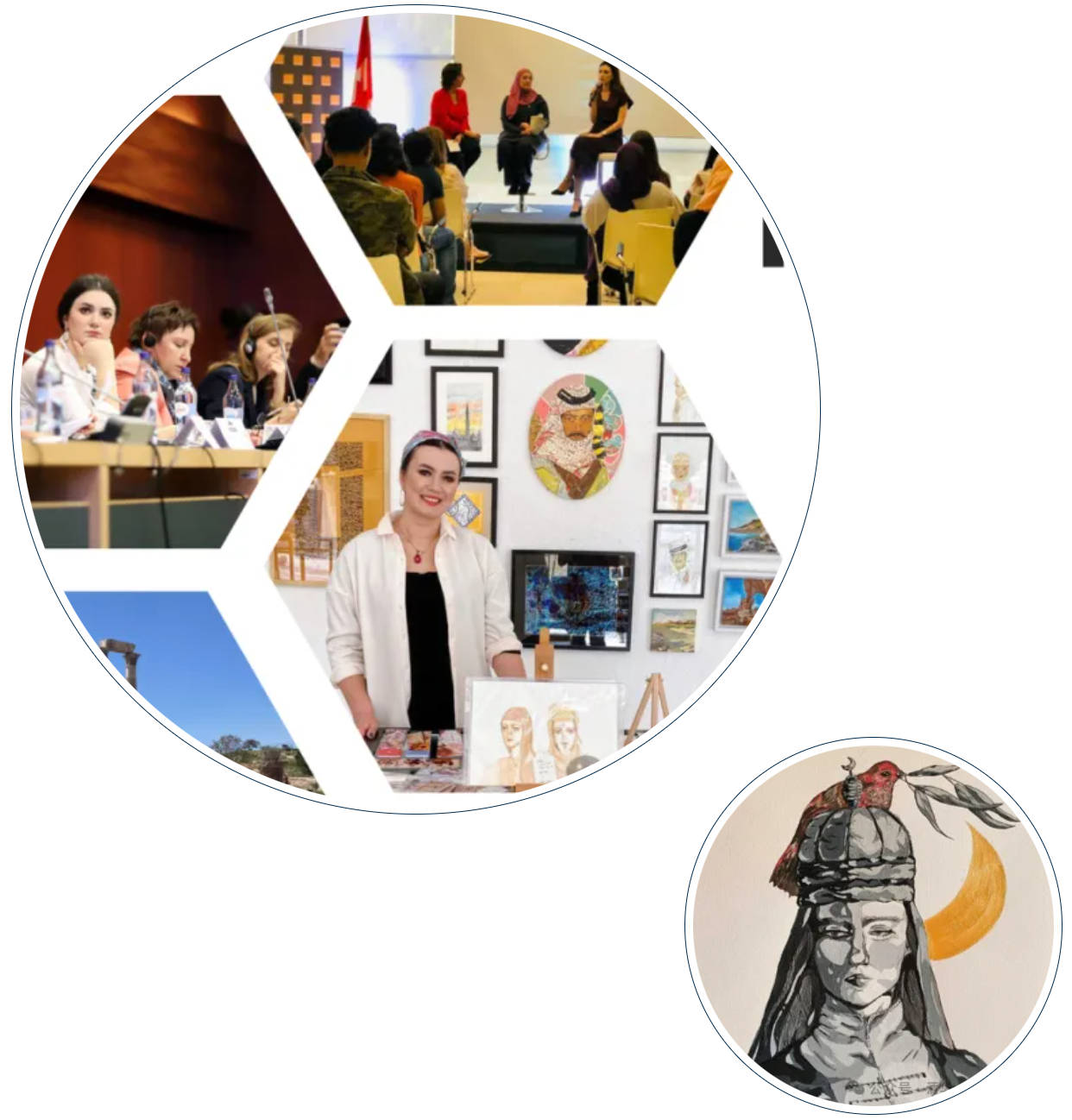 两年前,戴一娜决定在互联网上分享自己的绘画作品,并迅速取得了一定成就。“我的艺术作品主要展现了约旦的多样性,在不到两年的时间里已经卖给了来自30多个国家的客户。”然而,在此之前,戴一娜甚至不曾向身边最亲密的人展示自己的作品。戴一娜认为,“人无法认识认知之外的事物,”但同时,她也相信行为是拓宽认知边界的关键,并鼓励大家有想法就要勇敢去实现。