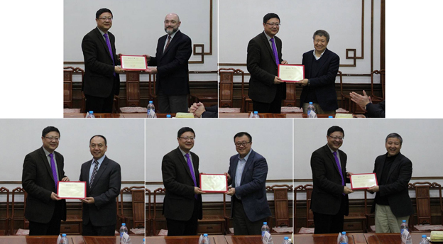 陈吉宁向包迈高(Michael Powers)、李强、齐晔、杨斌、汪晖颁发聘书。