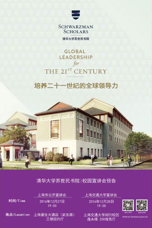 首批苏世民学者已于2016 年8 月正式入学,共有来自全球30个国家的110位杰出青年。第二届招生录取工作已经基本结束,第三届苏世民学者招募(2018年8月入学)将于明年2月正式启动。欢迎各位有兴趣的同学报名参加招生宣讲会。