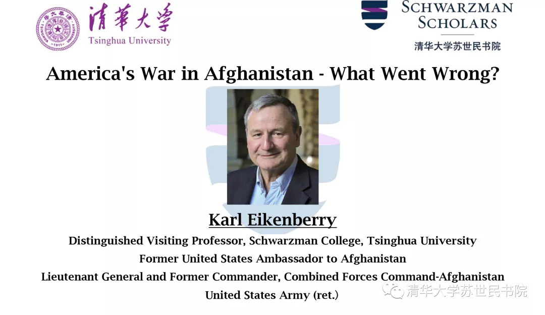 America's war in Afghanistan has lasted almost two decades - the longest conflict in U.S. history. Unquestionably, there have been marked improvements in Afghanistan's governance, education, and health care since Taliban's harsh rule ended in 2001. Yet progress has been slow and uneven, while politics and security remain fragile. Ambassador Karl Eikenberry, a member of the Schwarzman College faculty, who served as both America's top diplomat and military commander in Afghanistan, will discuss the factors that have frustrated efforts to achieve stability in that country and assess the prospects for a lasting peace settlement.